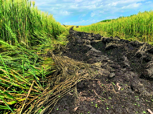 記者現場看到,陳巴爾虎旗特尼河林場大片大片麥田、油菜田里,被鏟出一道道觸目驚心、黑綠相間的“斑馬線”?!霸儆惺嗵炀鸵崭盍?,現在毀了實在可惜!”附近群眾說。