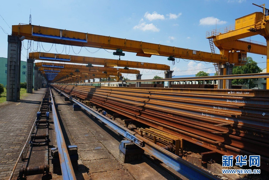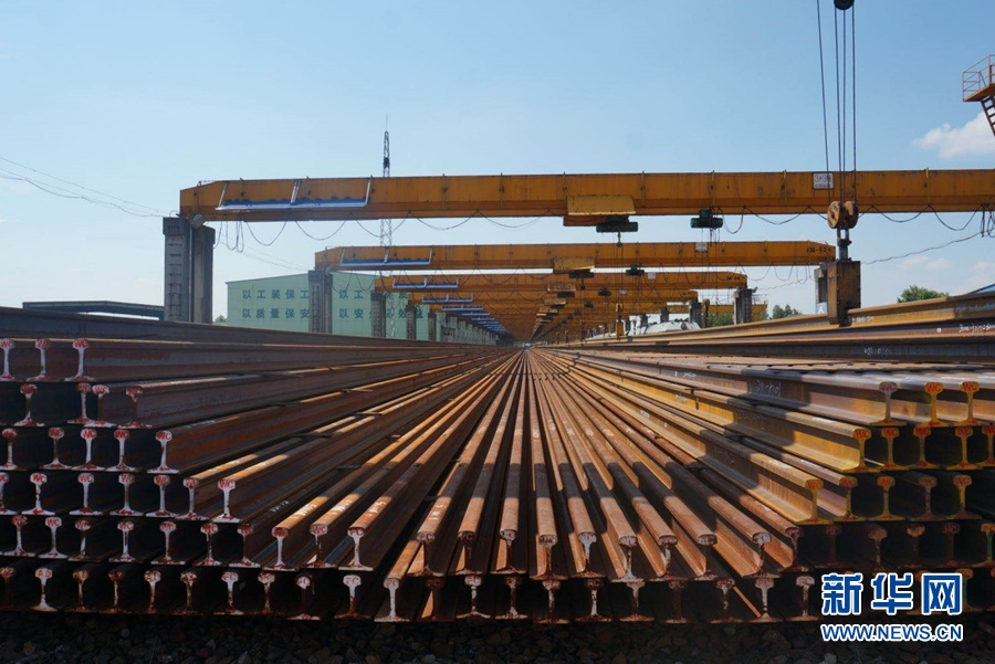 8月17日,在向塘長軌基地,焊接好的一根根百米長高鐵鋼軌整齊地排列在一起。新華網記者劉瓊?攝