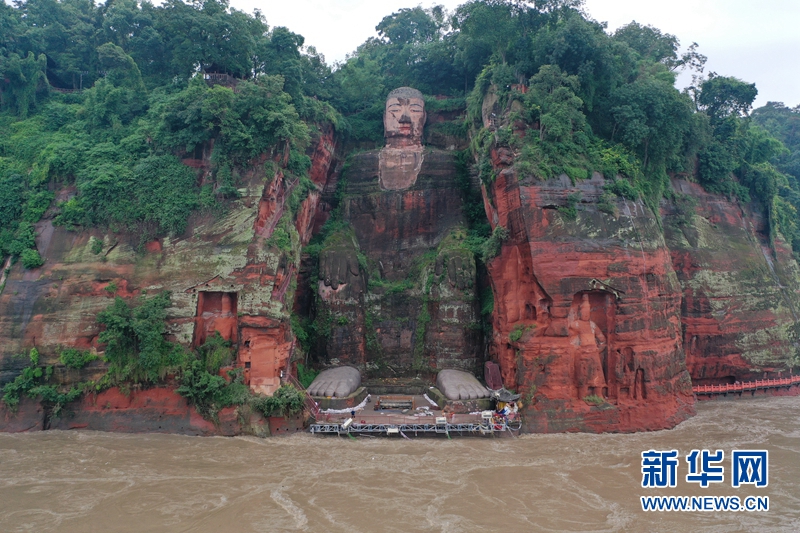 為應對強降雨,樂山大佛景區管委會于8月17日凌晨提前關閉景區,對包括樂山大佛本體在內的各級文物保護單位、碼頭及游船、施工場地等開展安全隱患排查整治,并將沙袋運往佛腳平臺沿佛腳腳踏堆放,以避免洪水對大佛本體的直接沖撞。