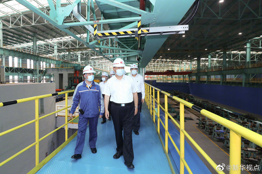 19日上午,正在安徽考察調研的習近平總書記走進中國寶武馬鋼集團優質合金棒材車間,冒著高溫察看生產運行情況,并同勞動模范、工人代表親切交流。習近平指出,在抗擊新冠肺炎疫情過程中,馬鋼較早復工復產,實現了產量、營銷收入同比雙升,展現了國有經濟的強大韌性。他勉勵馬鋼在長三角一體化發展中把握機遇、順勢而上,特別是要把自身改革發展同長三角一體化發展有機結合銜接,力爭在長三角一體化發展中不斷發展壯大自己,也為長三角一體化發展作出自己的貢獻。(文字記者:張曉松 攝影記者:鞠鵬 王曄 燕雁)