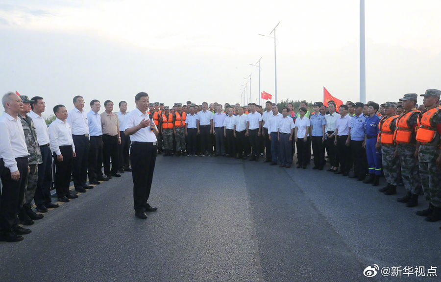 19日下午,正在安徽考察調研的習近平總書記來到合肥市肥東縣十八聯(lián)圩生態(tài)濕地蓄洪區(qū)巢湖大堤羅家疃段,察看巢湖水勢水情。他強調,洪水退后,要防止蓄洪區(qū)內(nèi)出現(xiàn)水退人進的現(xiàn)象。我們要實現(xiàn)人與自然和諧相處,就不能同自然爭奪發(fā)展空間。八百里巢湖要用好,更要保護好、治理好,使之成為合肥這個城市最好的名片。(文字記者:張曉松 攝影記者:鞠鵬 王曄 燕雁)