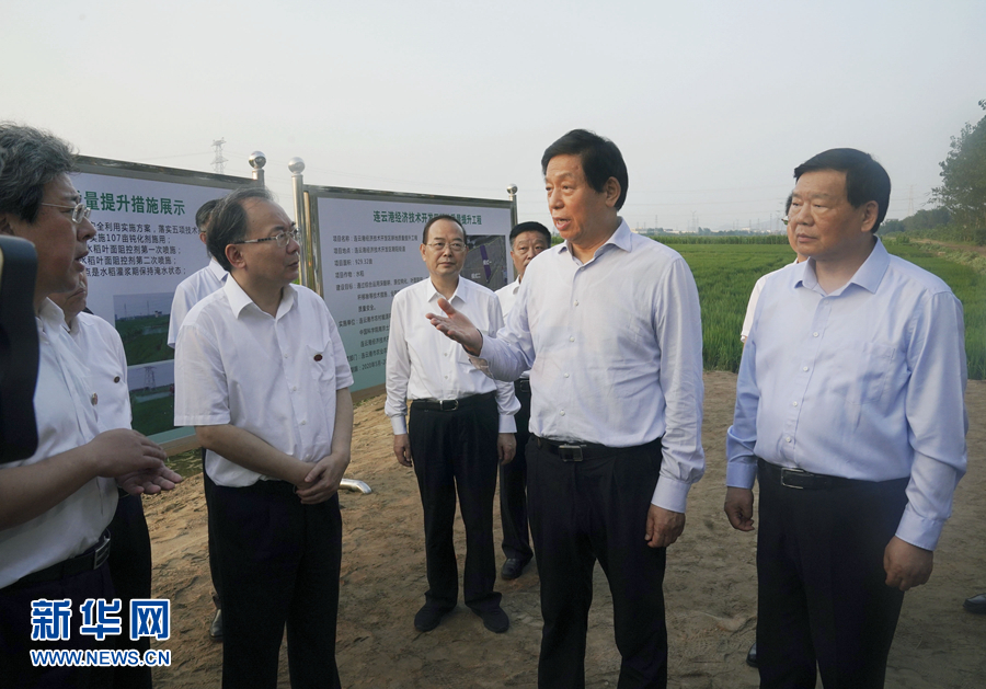 8月23日至26日,中共中央政治局常委、全國人大常委會委員長栗戰書率全國人大常委會執法檢查組在江蘇、山東檢查土壤污染防治法實施情況。這是8月23日,栗戰書在江蘇連云港進行實地檢查。 新華社記者 劉衛兵 攝