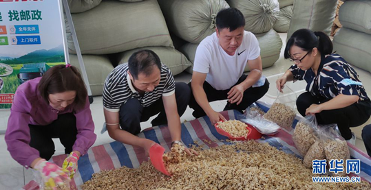 9月3日,陜西勉縣楊莊村村民將木耳中的“白富美”——玉木耳裝袋打包。新華網(wǎng)記者李志強 攝