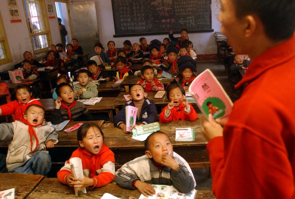 ↑ 這是四川大涼山彝族自治州昭覺縣一所縣城小學的孩子們正在上課(2004年11月8日拍攝)。