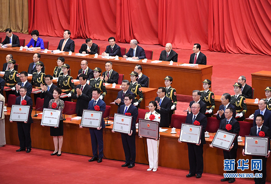 李克強主持大會,栗戰書宣讀主席令,王滬寧宣讀表彰決定,汪洋、趙樂際、韓正、王岐山出席。