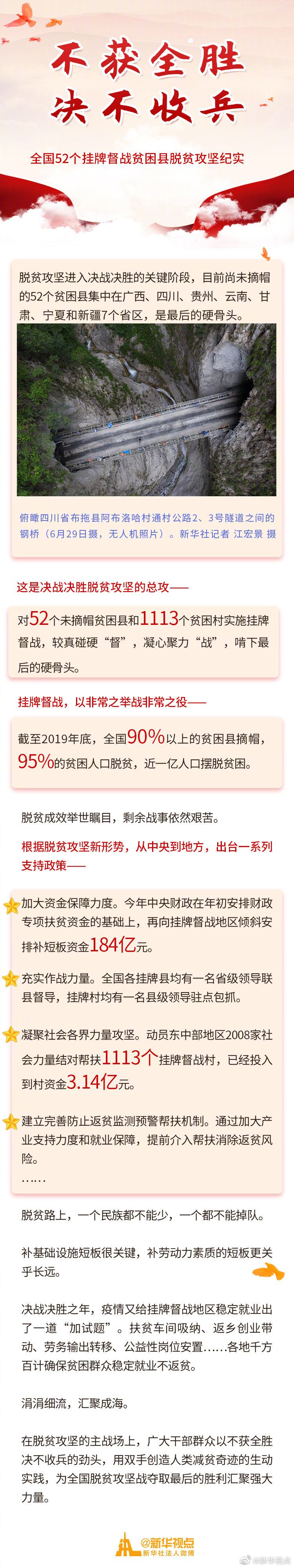 對52個(gè)未摘帽貧困縣和1113個(gè)貧困村實(shí)施掛牌督戰(zhàn),較真碰硬“督”,凝心聚力“戰(zhàn)”,啃下最后的硬骨頭。
