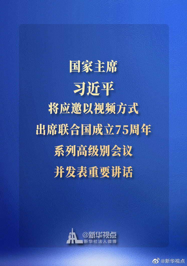 外交部發言人華春瑩15日宣布:國家主席習近平將應邀以視頻方式出席聯合國成立75周年系列高級別會議并發表重要講話。?