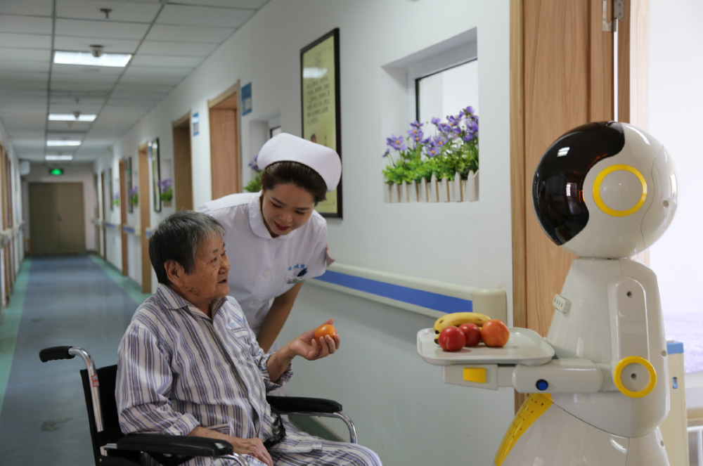 情感陪護機器人服務(wù)老年患者。(沈陽安寧醫(yī)院供圖)