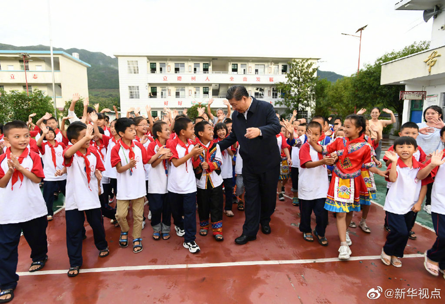 16日下午,正在湖南考察調研的習近平總書記來到郴州市汝城縣文明瑤族鄉(xiāng)第一片小學,走進四年級教室,同正在上思政課的同學們親切交流。同學們紛紛向習爺爺分享自己熟悉的長征故事,習近平聽了十分高興,連夸“講得好”。他說,作為“半條被子的故事”發(fā)生地,紅色基因要在你們身上得到體現(xiàn)。革命事業(yè)要一代一代傳下去,中華民族偉大復興將在今天的青少年一代手中實現(xiàn)。他把同學們比作“小樹苗”,將來會長成中華民族的參天大樹,希望同學們好好學習、天天向上,努力成長為社會主義建設者和接班人。 (文字記者張曉松、朱基釵 攝影記者李學仁、謝環(huán)馳)?