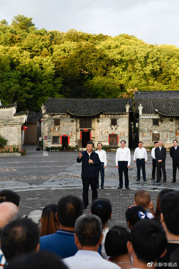 16日下午,在湖南省郴州市沙洲瑤族村考察調研的習近平總書記,走進“半條被子的故事”主人公徐解秀的后人——村民朱小紅家中。朱小紅告訴總書記,他在景區當講解員,家里還開了農家樂,已經脫貧,生活越來越好。他連連感慨,共產黨從給老百姓被子到給幸福路子,日子今非昔比。習近平強調:“因為有老百姓的支持,我們黨才有了光榮歷程、輝煌事業。你們家里的變化也說明一個道理,共產黨堅持為民本色,說到做到。”隨后,他步行來到村子廣場,村民們熱情歡呼著圍攏過來。習近平對鄉親們說,中國共產黨人自己有一條棉被也可以分半條給老百姓。建黨近百年不忘初心,老百姓把共產黨看成是自家的黨,是老百姓的黨。我今天到這里來,也是受教育。我作為一名共產黨員、作為一名共產黨的負責干部,本身也要不斷受教育、不斷受洗禮、不斷受啟示,履行好我的職責,同14億中國人民在一起、同9000多萬黨員在一起,把我們國家建設得更好,讓我們的老百姓更加開心、更加幸福。(文字記者張曉松、朱基釵 攝影記者李學仁、謝環馳、岳月偉)?