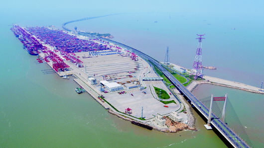 上海洋山港集裝箱碼頭(8月17日攝)。新華社記者丁汀攝