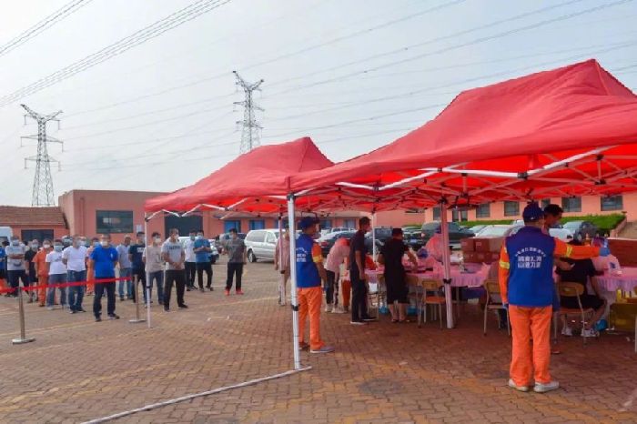 按照“應檢盡檢”工作安排,青島港在四大港區共設立7個采集點,對全港2萬多名職工進行檢測,25日完成一類、二類全體人員,26日完成其余人員檢測,現場采樣過程中,安排專人帶隊負責,保持足夠安全距離,確保檢測井然有序。