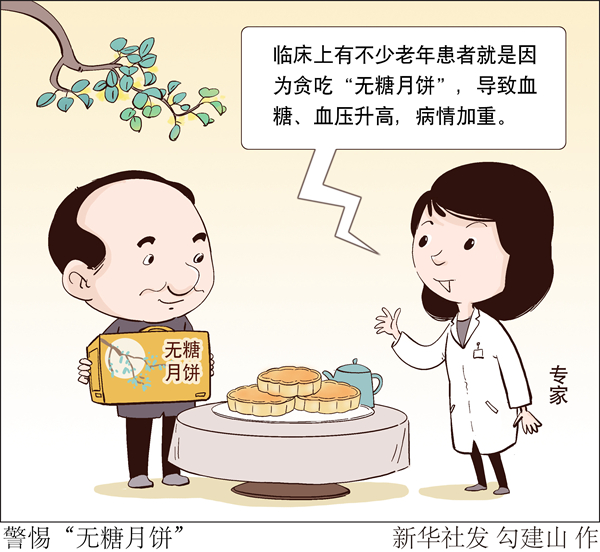 另外,市場(chǎng)上所謂的“無糖月餅”,是指餡料中不含蔗糖的月餅,但月餅本身含有大量的淀粉,可分解成葡萄糖。臨床上有不少老年患者就是因?yàn)樨澇浴盁o糖月餅”,導(dǎo)致血糖、血壓升高,病情加重。