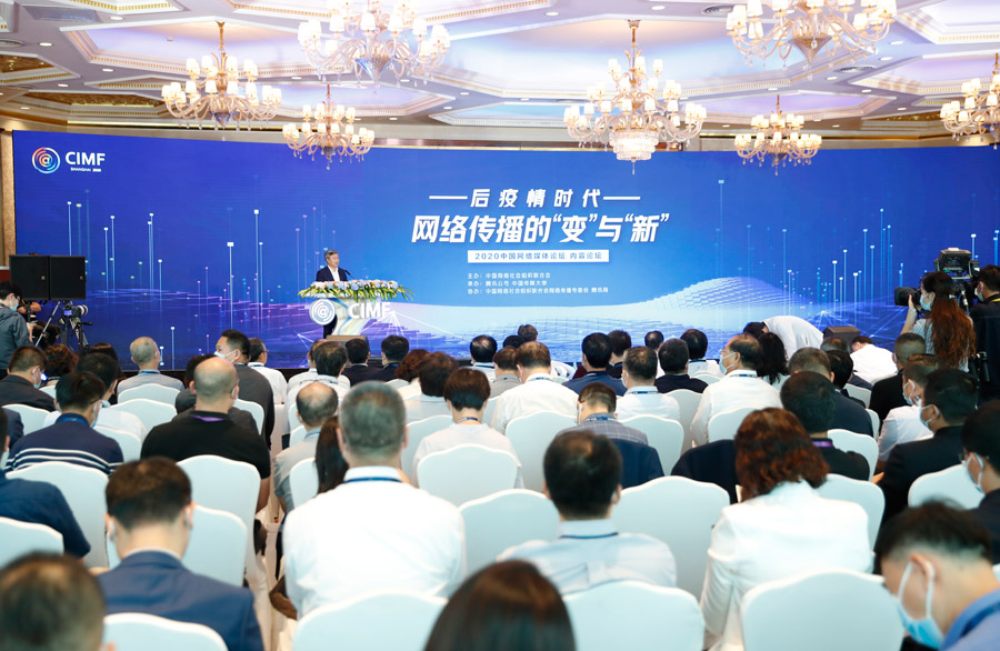 ??? 9月27日,2020中國(guó)網(wǎng)絡(luò)媒體論壇內(nèi)容論壇在上海舉行,各界嘉賓圍繞“后疫情時(shí)代網(wǎng)絡(luò)傳播的‘變’與‘新’”這一主題開(kāi)展探討和交流。圖為論壇現(xiàn)場(chǎng)。