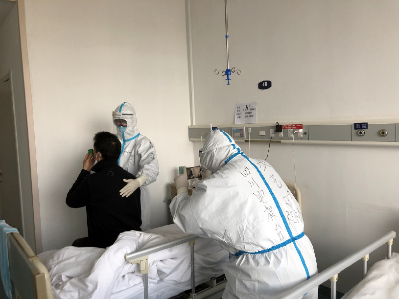 四川廣播電視臺張藝2020年3月18日在武漢大學人民醫(yī)院隔離病房采訪