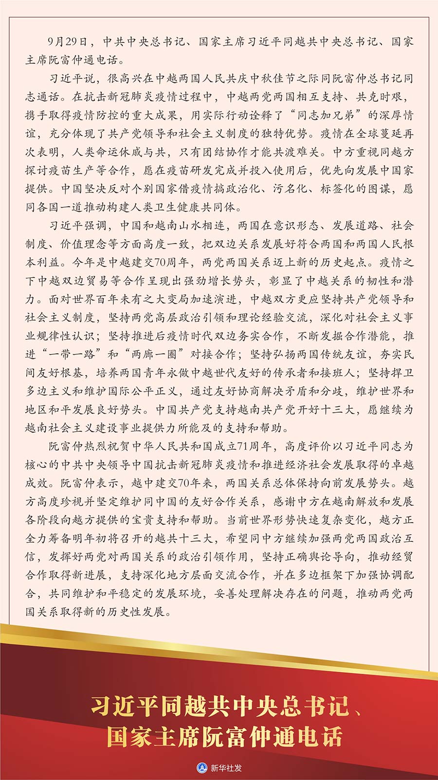 新華社北京9月29日電 9月29日,中共中央總書記、國家主席習近平同越共中央總書記、國家主席阮富仲通電話。