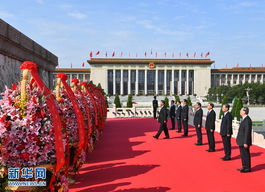 9月30日上午,黨和國家領(lǐng)導(dǎo)人習(xí)近平、李克強(qiáng)、栗戰(zhàn)書、汪洋、王滬寧、趙樂際、韓正、王岐山等來到北京天安門廣場(chǎng),出席烈士紀(jì)念日向人民英雄敬獻(xiàn)花籃儀式。 新華社記者 鞠鵬 攝