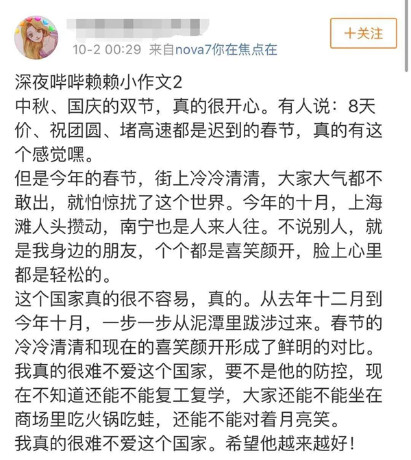 正如網(wǎng)友所說:“這個(gè)國(guó)家,真的很不容易?!钡舱且?yàn)樵?jīng)的艱難,才讓所有經(jīng)歷過那些驚惶、擔(dān)憂、迷茫的人,在重回平靜的生活后,會(huì)倍感山川清秀、歲月溫柔,那之前被按下暫停鍵的團(tuán)圓飯、那口早就該喝下的老燒酒、還有那個(gè)欠下好久的擁抱,都會(huì)帶給人更強(qiáng)烈的幸福。