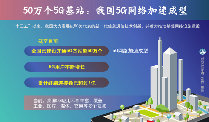 新華社北京10月6日電(記者高亢)“十三五”以來,我國大力發展以5G為代表的新一代信息通信技術創新,并著力推動基礎網絡設施建設。截至目前,全國已建設開通5G基站超50萬個,5G網絡加速成型。