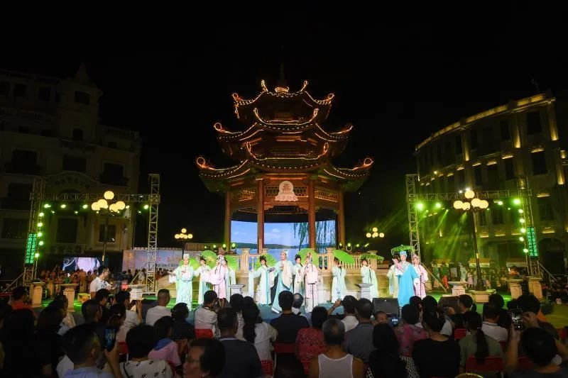 人們在汕頭小公園中山紀念亭觀賞潮劇表演。新華社記者 陳曄華 攝