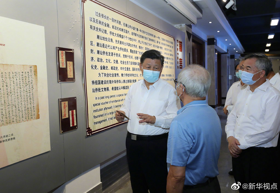 習近平總書記13日下午來到廣東省汕頭市小公園開埠區,走進開埠文化陳列館、僑批文物館,了解汕頭開埠歷史、設立經濟特區以來的建設發展情況,和潮汕僑胞心系家國故土、支持祖國和家鄉建設的歷史。隨后,習近平步行察看開埠區街區人文歷史風貌,同市民群眾親切交流。(文字記者:張曉松、朱基釵 攝影記者:鞠鵬、王曄、李響)