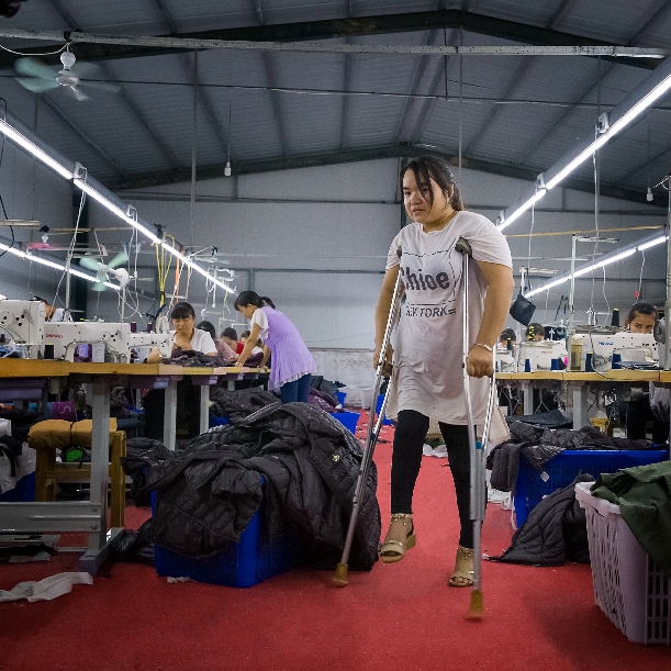 在呂陵鎮還有這么一個村民,黃菲菲,患有小兒麻痹,家有老人需要贍養,還有個2歲多的孩子,丈夫也常年不在家。雖然她是貧困戶,生活負擔這么大,但磨難壓不倒堅強的她。為了讓孩子以后能生活地更好些,她來到扶貧車間打工。(楊科 攝)