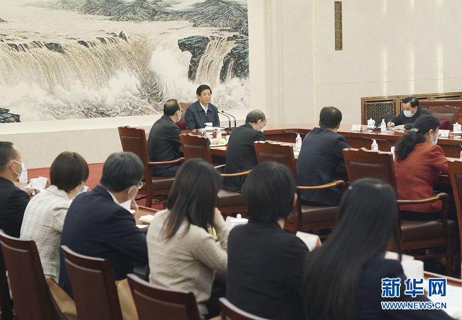 中共中央政治局委員、全國人大常委會(huì)副委員長王晨主持座談會(huì)。