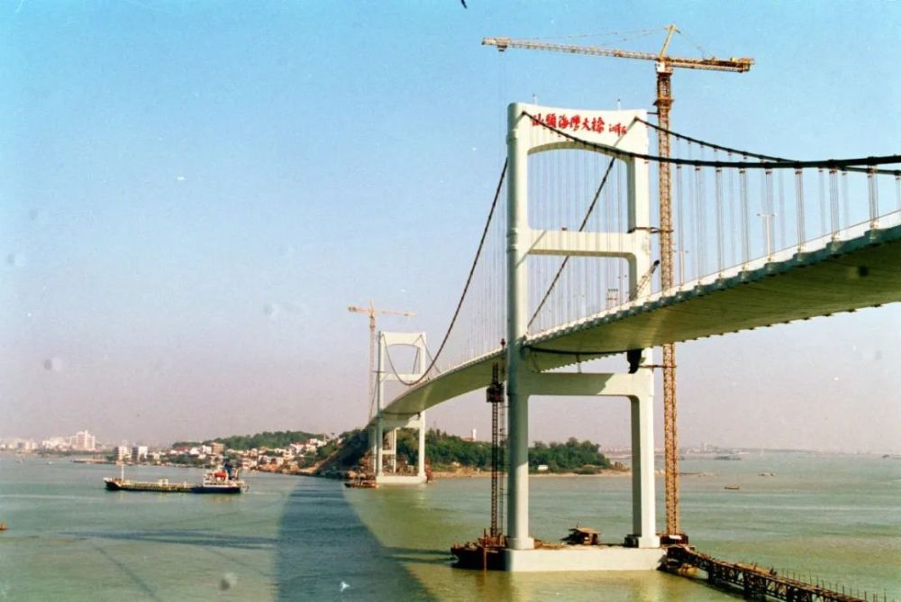 中國首座現代化大跨度懸索橋——廣東汕頭海灣大橋日前勝利竣工。新華社記者 王敬德 攝(1995年12月25日發)