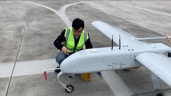 上圖為彭世濤在試飛一架用于測繪、航拍的民用無人機。