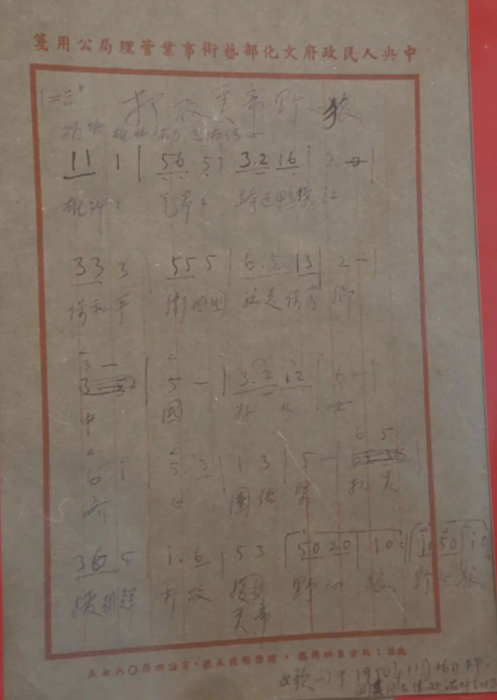 期間,在某炮兵部隊戰前動員的采訪中,連隊墻報上一首表現“抗美援朝、保家衛國”的詩引起陳伯堅的注意,他趕緊抄在筆記本上,在文字上略做了修改,如原文中“邁過鴨綠江”,改為“跨過鴨綠江”;“中華好兒女”改為“中國好兒女”;“打敗美國野心狼”改為“打敗美帝野心狼”等。