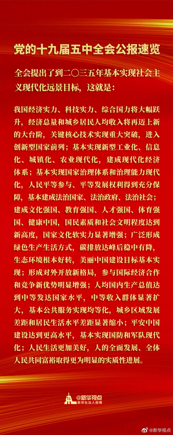 黨的十九屆五中全會公報速覽丨全會提出了到二〇三五年基本實現社會主義現代化遠景目標-新華網