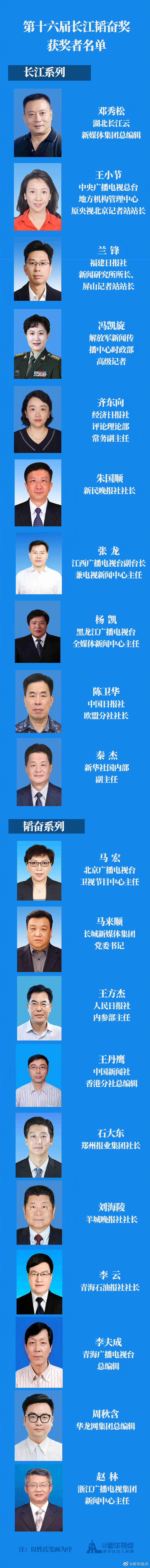 第十六屆長江韜奮獎獲獎者名單