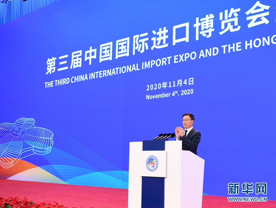 新華社上海11月5日電 中共中央政治局常委、國務院副總理韓正4日在上海出席第三屆中國國際進口博覽會開幕式。