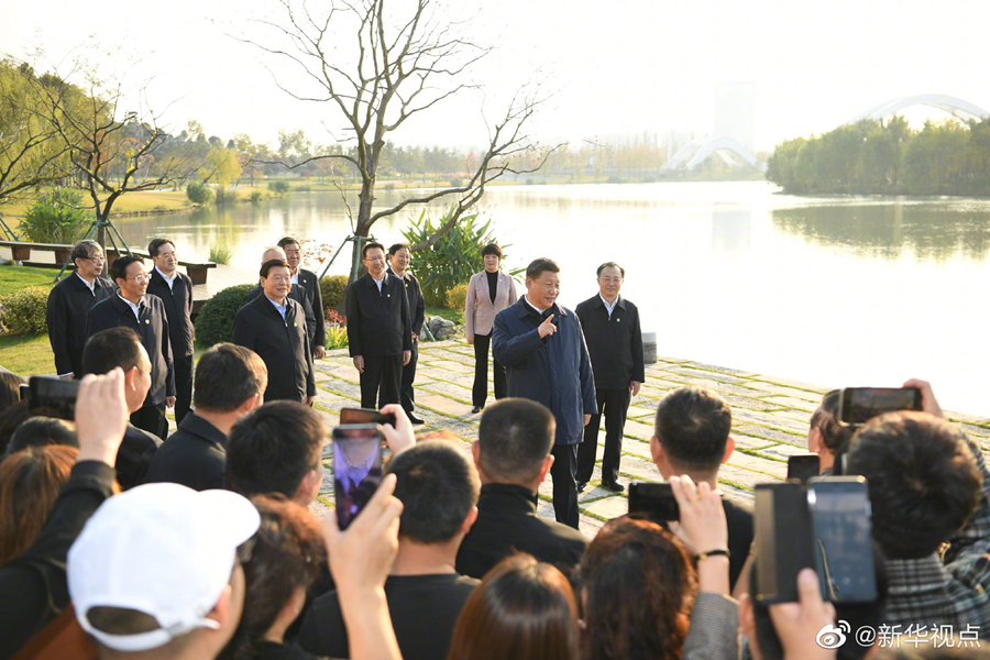 習近平總書記13日在江蘇省揚州市考察調研。他先后來到運河三灣生態文化公園、江都水利樞紐,了解大運河沿線環境整治和文化保護傳承利用、南水北調東線工程規劃建設和江都水利樞紐運行等情況。(文字記者:張曉松、朱基釵? 攝影:鞠鵬、謝環馳、燕雁)