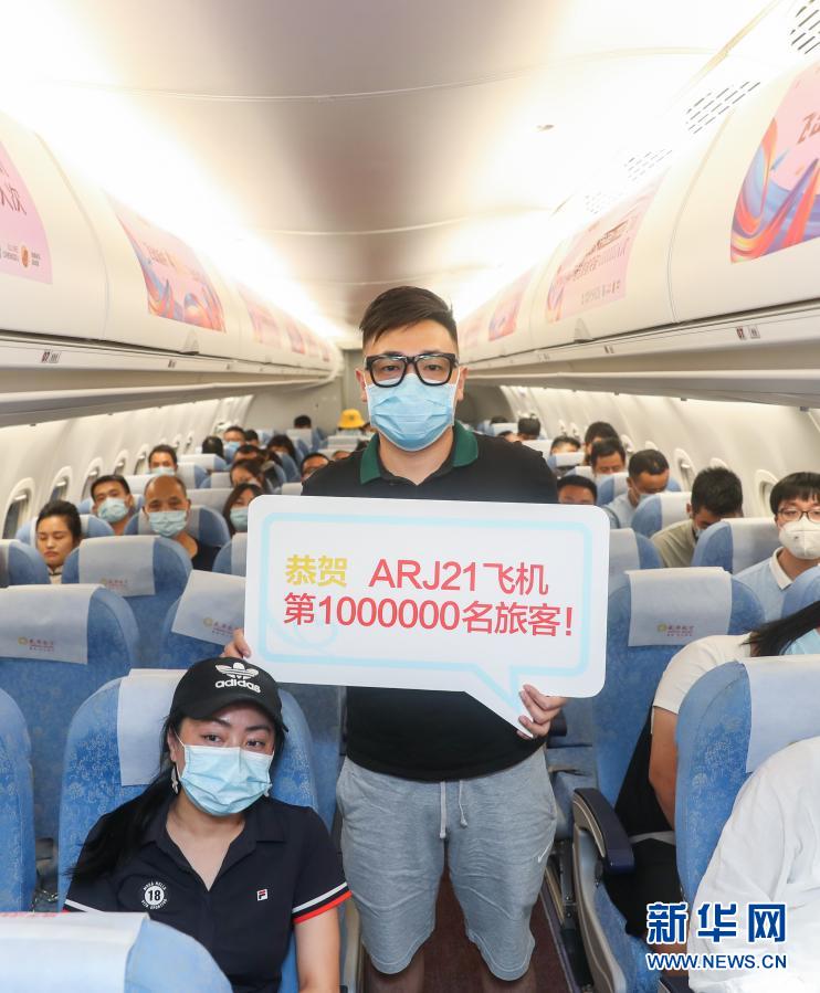 7月20日晚,ARJ21飛機的第100萬名乘客在機艙內(nèi)拍照留念。該架飛機從上饒三清山機場起飛,在成都雙流機場降落。新華社記者 丁汀 攝
