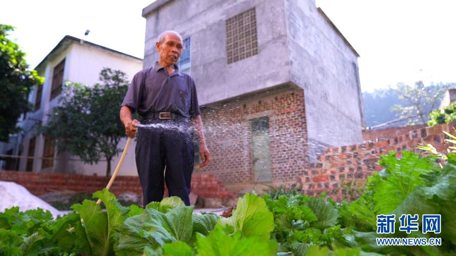 廣西隆安縣實施跨區域集中連片供水工程后,一名隴選村村民用自來水給菜地澆水(11月12日攝)。新華社記者 楊馳 攝