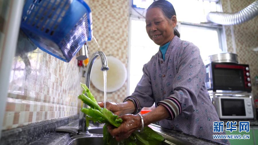 廣西隆安縣實施跨區域集中連片供水工程后,愛華村龍微屯的村民在家中用上了自來水(11月12日攝)。新華社記者 楊馳 攝