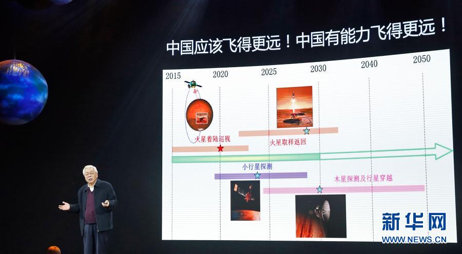 “這次嫦娥五號肩負著月球采樣返回的光榮使命,我們的天問一號也正在飛向火星的路上,我們還要飛得更遠,去探測木星、小行星并建設我們的國際月球科研站。中國已經昂首進入了深空探測的新時代。”歐陽自遠說。