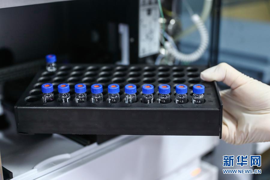 4月11日,工作人員在國藥集團中國生物新冠疫苗生產基地質量檢定部門對新型冠狀病毒滅活疫苗樣品進行純度檢測。新華社記者 張玉薇 攝