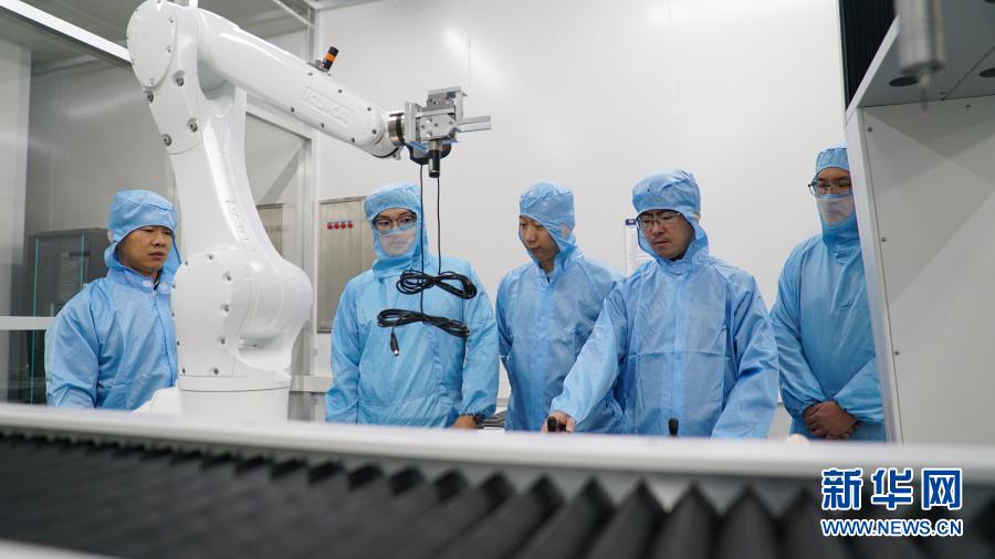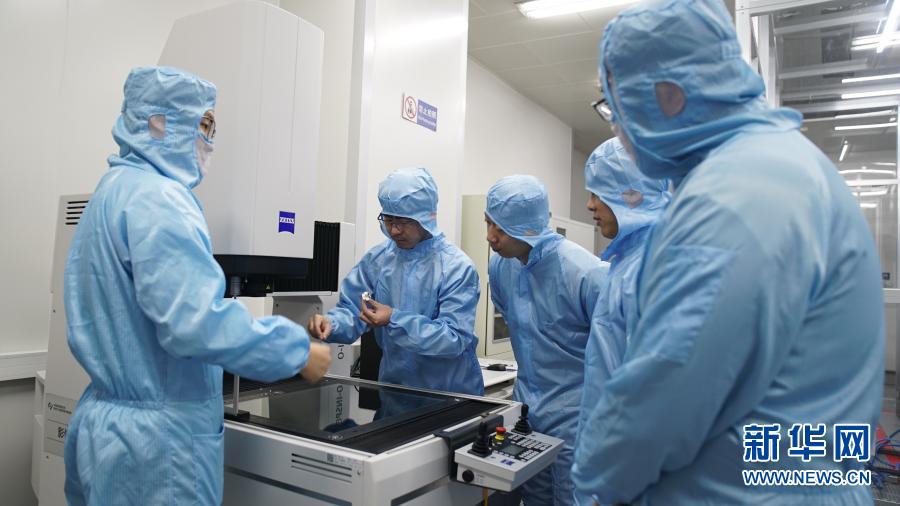 在中科院長春光機(jī)所,科研人員隋延林(中)和同事們探討科研方案(11月25日攝)。新華社發(fā)(王帆 攝)