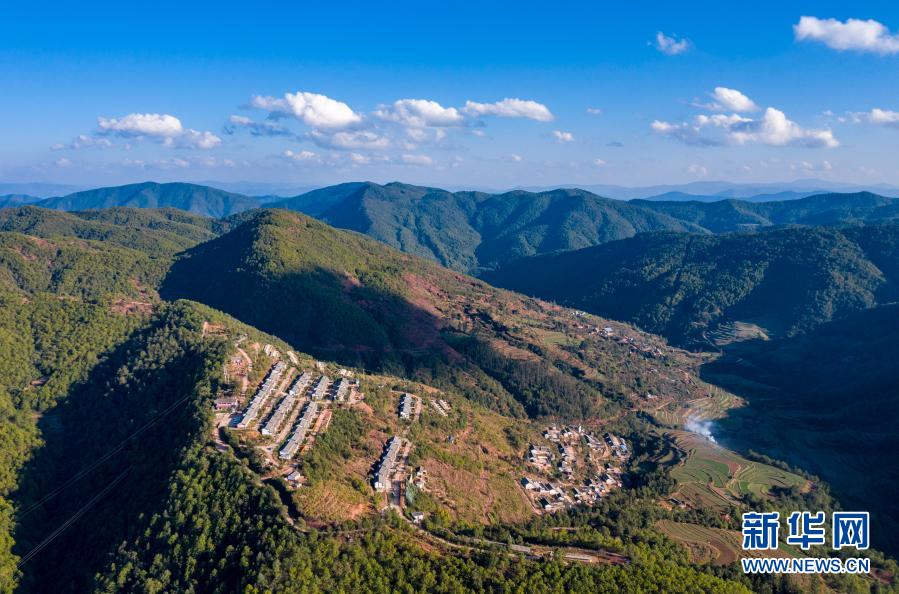 群山中的云南省楚雄市子午鎮(zhèn)挖銅村埂么村民小組(11月30日攝,無(wú)人機(jī)照片)。新華社記者 江文耀 攝