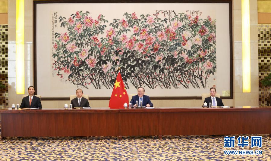 12月4日,國家副主席王岐山在北京以視頻方式會見清華大學經濟管理學院顧問委員會海外委員和中方企業家委員。 新華社記者 丁林 攝