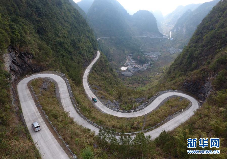 廣西百色市凌云縣泗城鎮隴雅村境內的道路(2017年3月12日攝,無人機照片)。新華社記者 陸波岸 攝