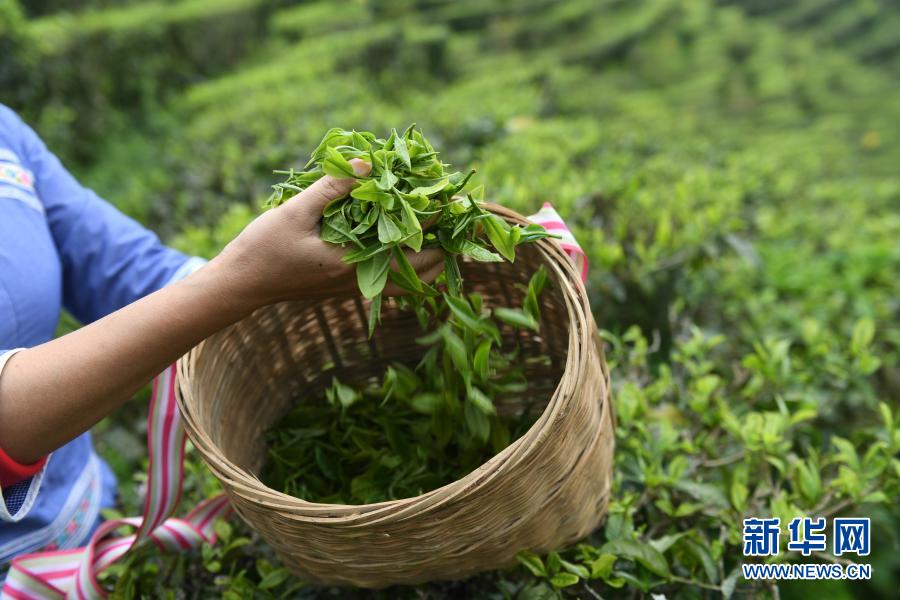 在廣西百色市凌云縣一處有機茶園,當地茶農在采春茶(2019年3月27日攝)。新華社記者 陸波岸 攝