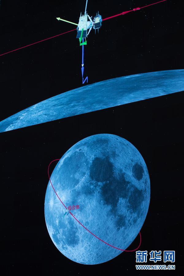 這是嫦娥五號上升器與軌道器返回器組合體完成交會對接畫面。新華社發(國家航天局供圖)