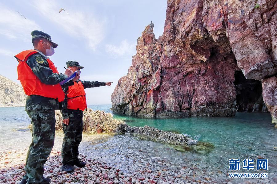 海警執法員對轄區無居民海島進行檢查(5月20日攝)。新華社發(包新宇 攝)