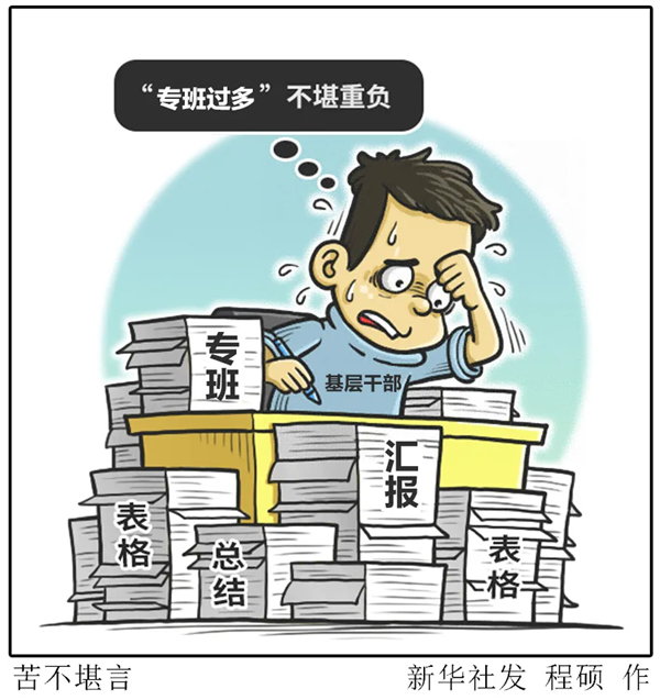 “一些專班還要求參與單位明確具體參與人員是誰,各自分工是什么。看起來井井有條,實(shí)際工作卻是為了應(yīng)付有關(guān)要求而準(zhǔn)備各種書面材料,從‘紙上來’到‘紙上去’,沒有推動實(shí)際工作,但增加了工作負(fù)擔(dān)?!敝胁磕晨h一名副局長直言。