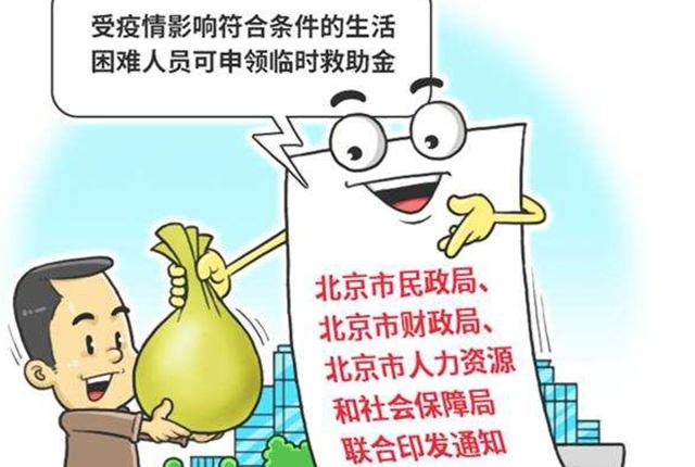 近日,北京市民政局等部門聯合出臺的《關于進一步加強困難群眾基本生活保障工作的通知》要求,對生活困難的未參保的城鄉失業人員、受疫情影響無法返崗復工且連續3個月無收入的京籍和持有居住證的非京籍務工人員,經本人申請,由戶籍地和居住地所在區發放一次性臨時救助金。