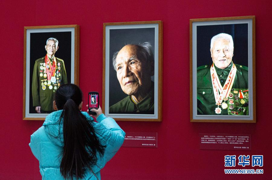 12月13日,參觀者在中國人民革命軍事博物館拍攝“致敬最可愛的人——中國人民志愿軍老戰士主題影像展”。