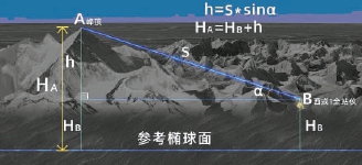 三角高程測量示意圖。